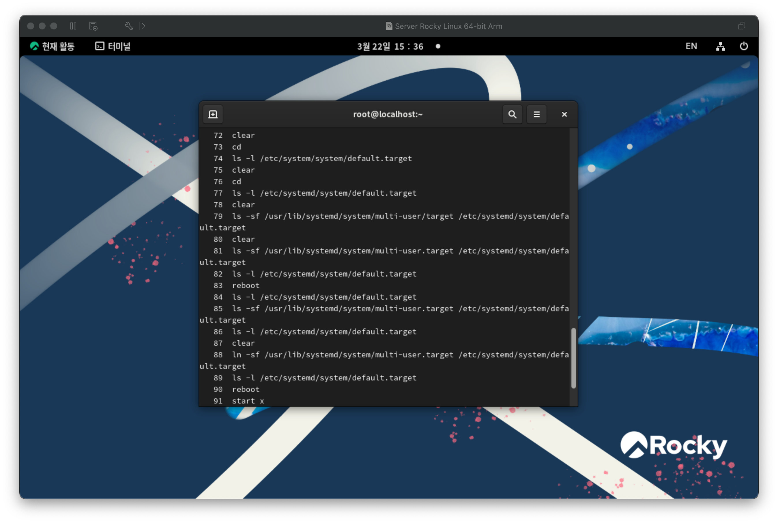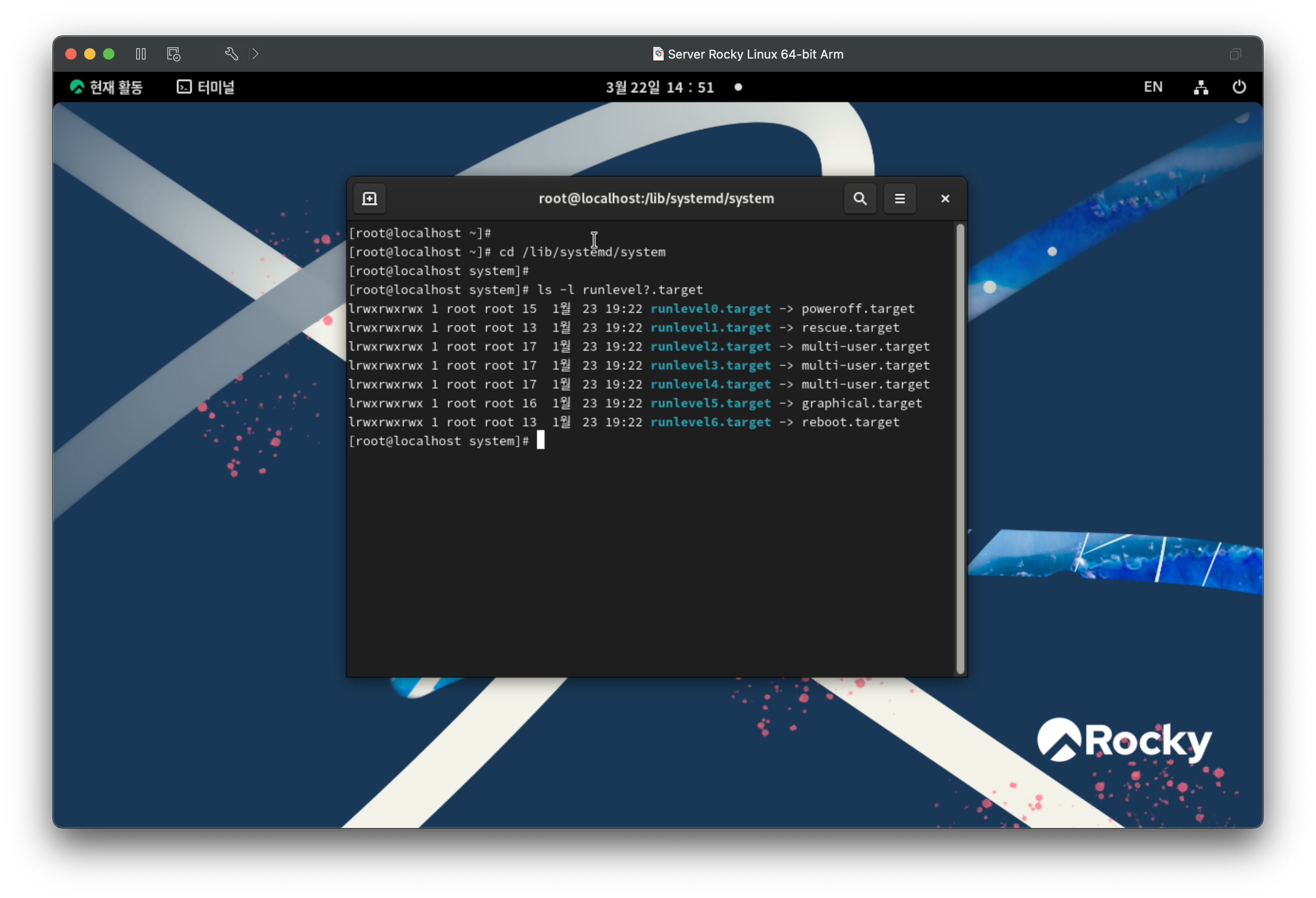 기본으로 설정된 런레벨을 확인한다. 그래픽 타겟이다.