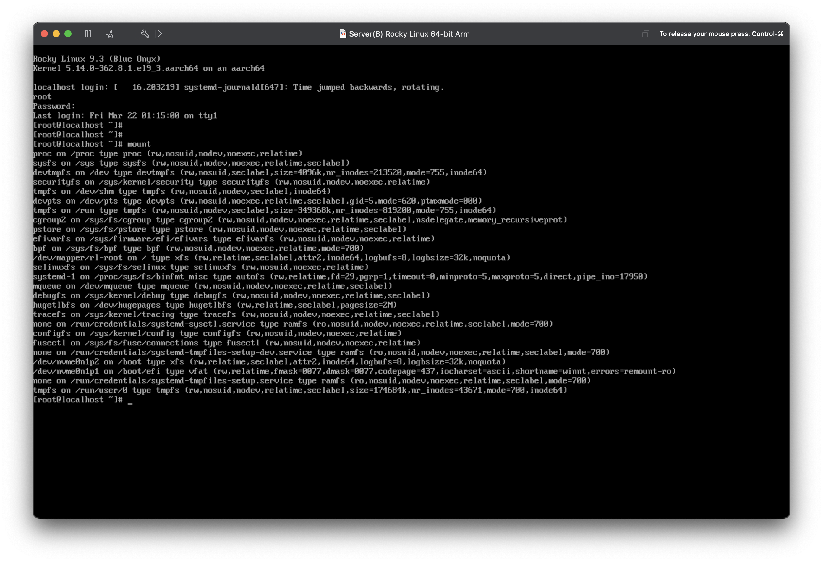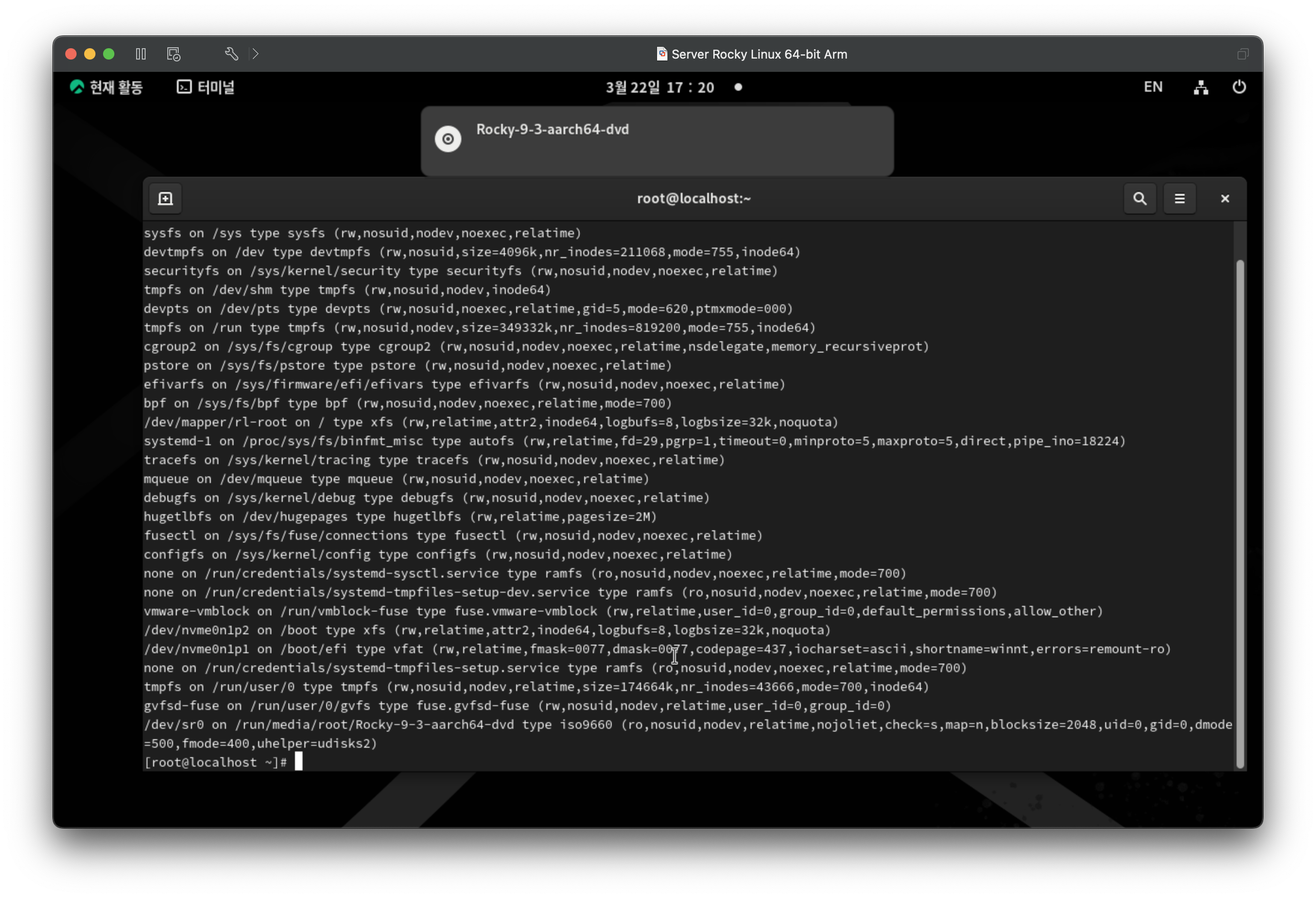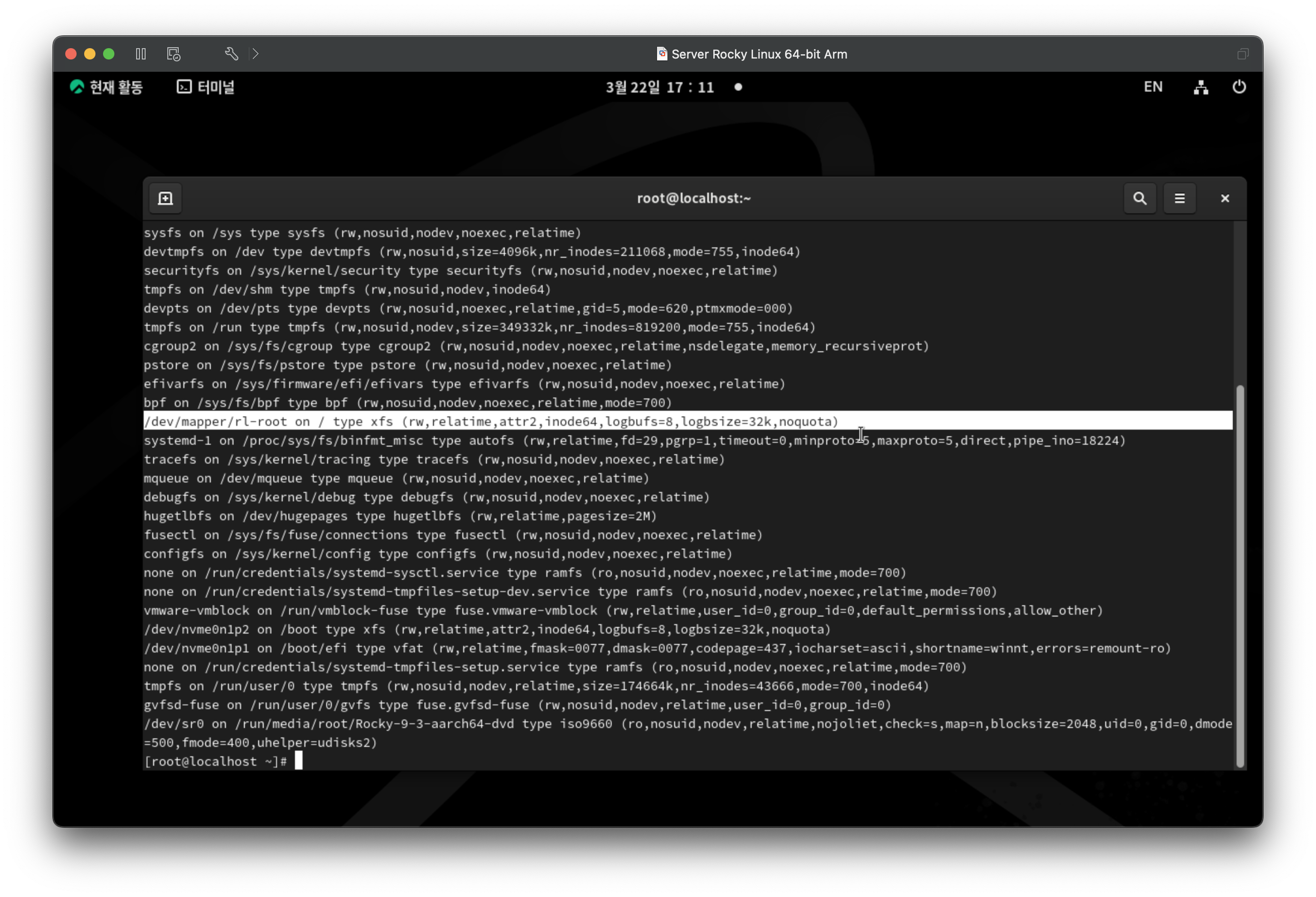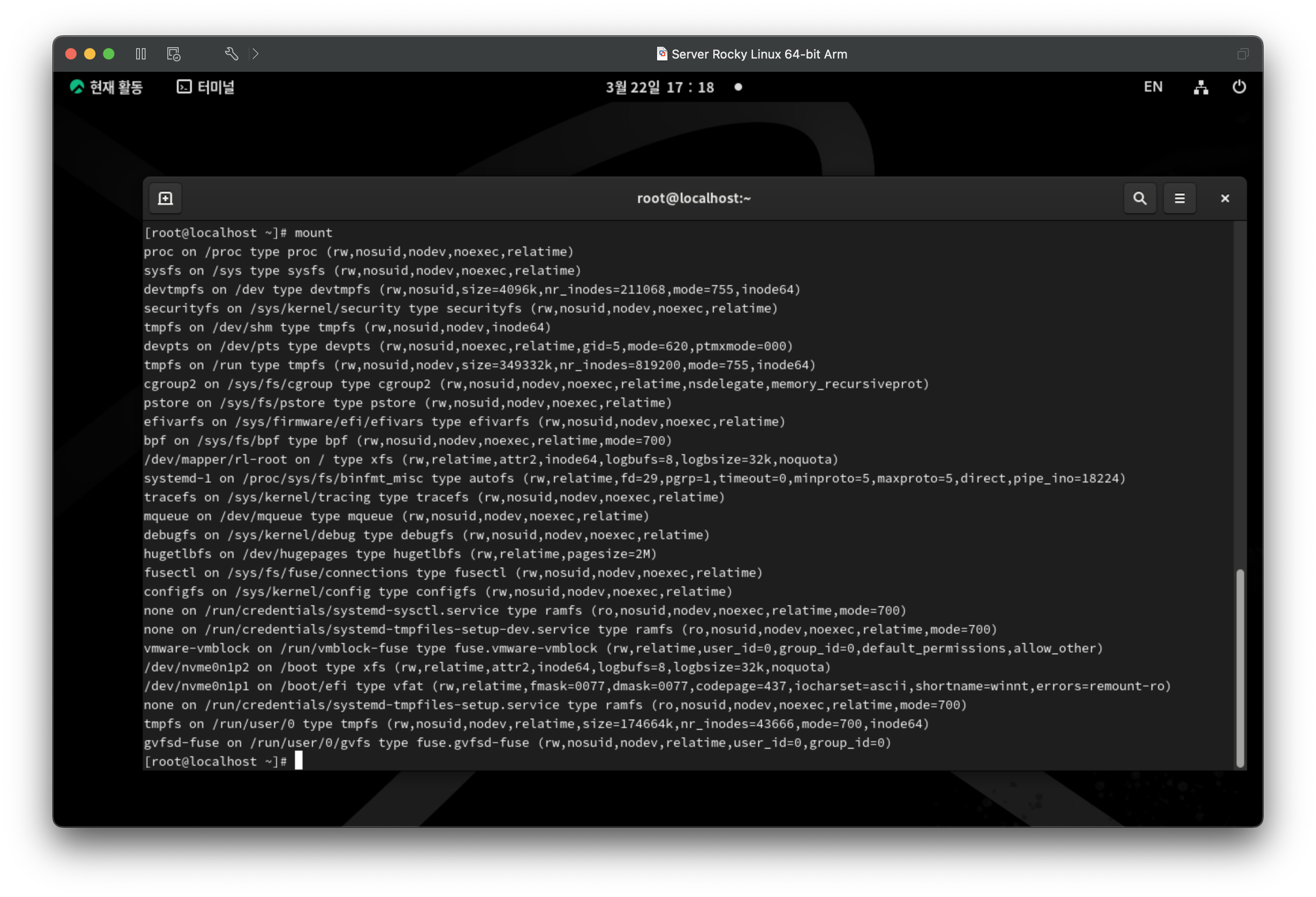 mount 명령으로 장치 마운트 확인