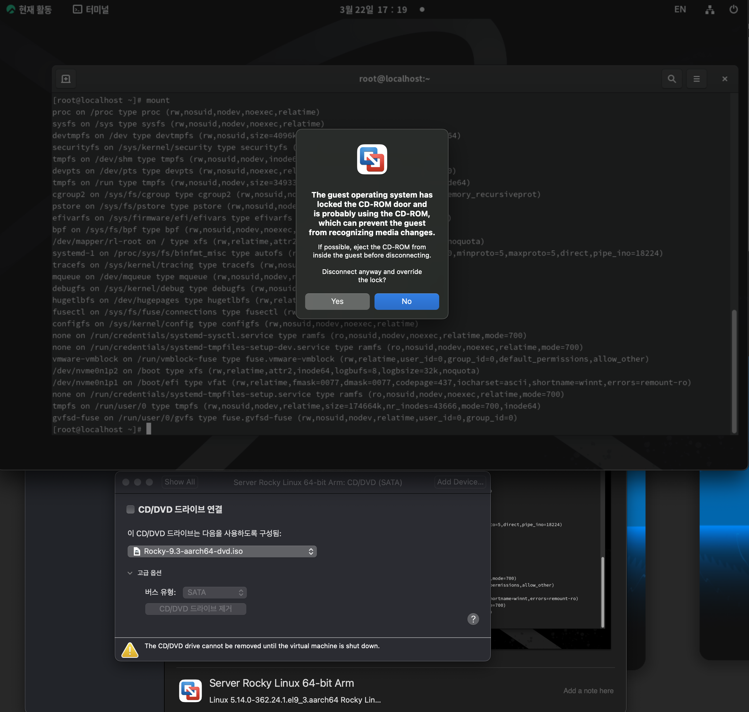 이제 시디롬을 umount 한다.