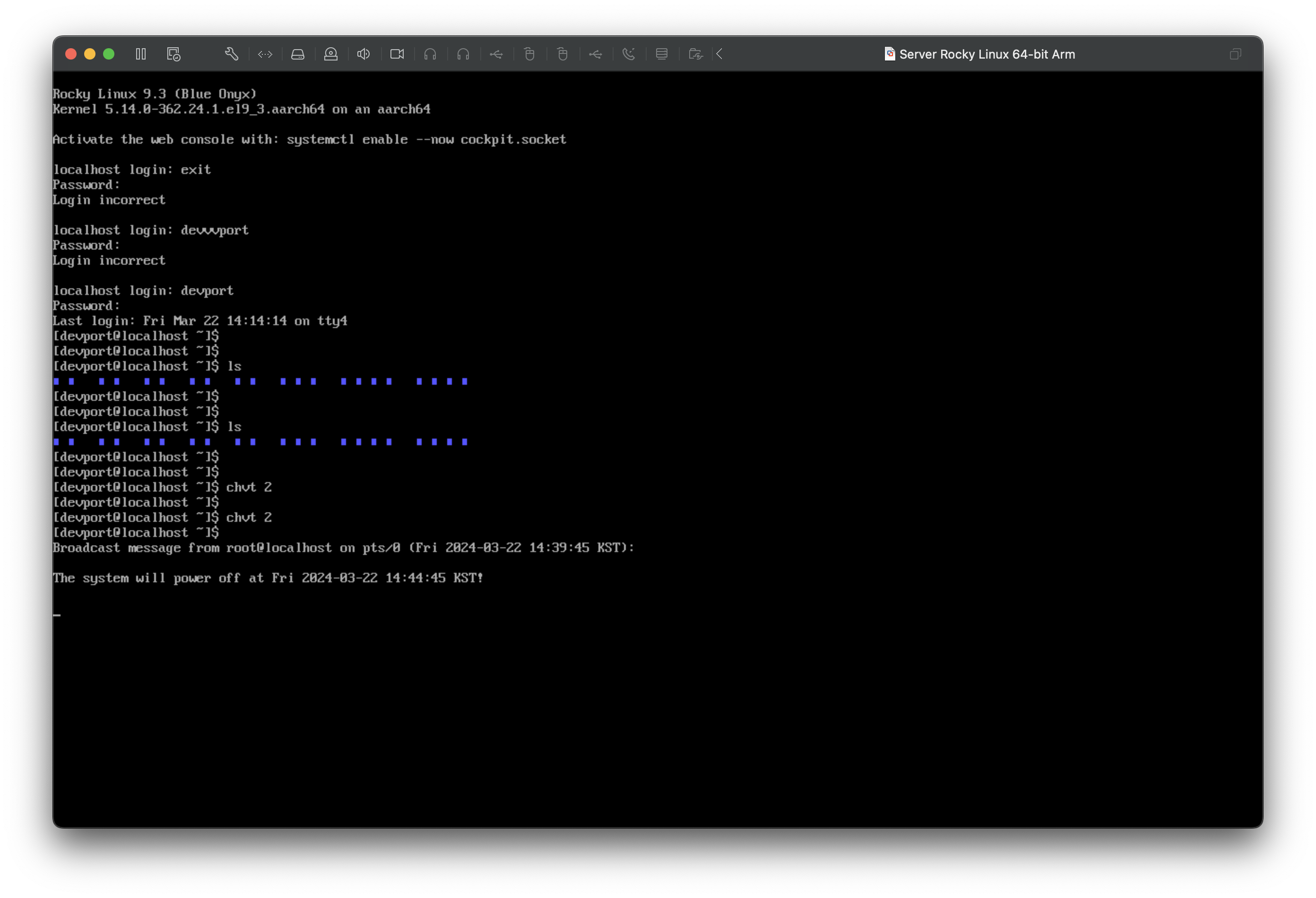 devport(사용자)의 가상콘솔창에 서버 종료 메시지가 뜨는 것을 확인할수 있다.