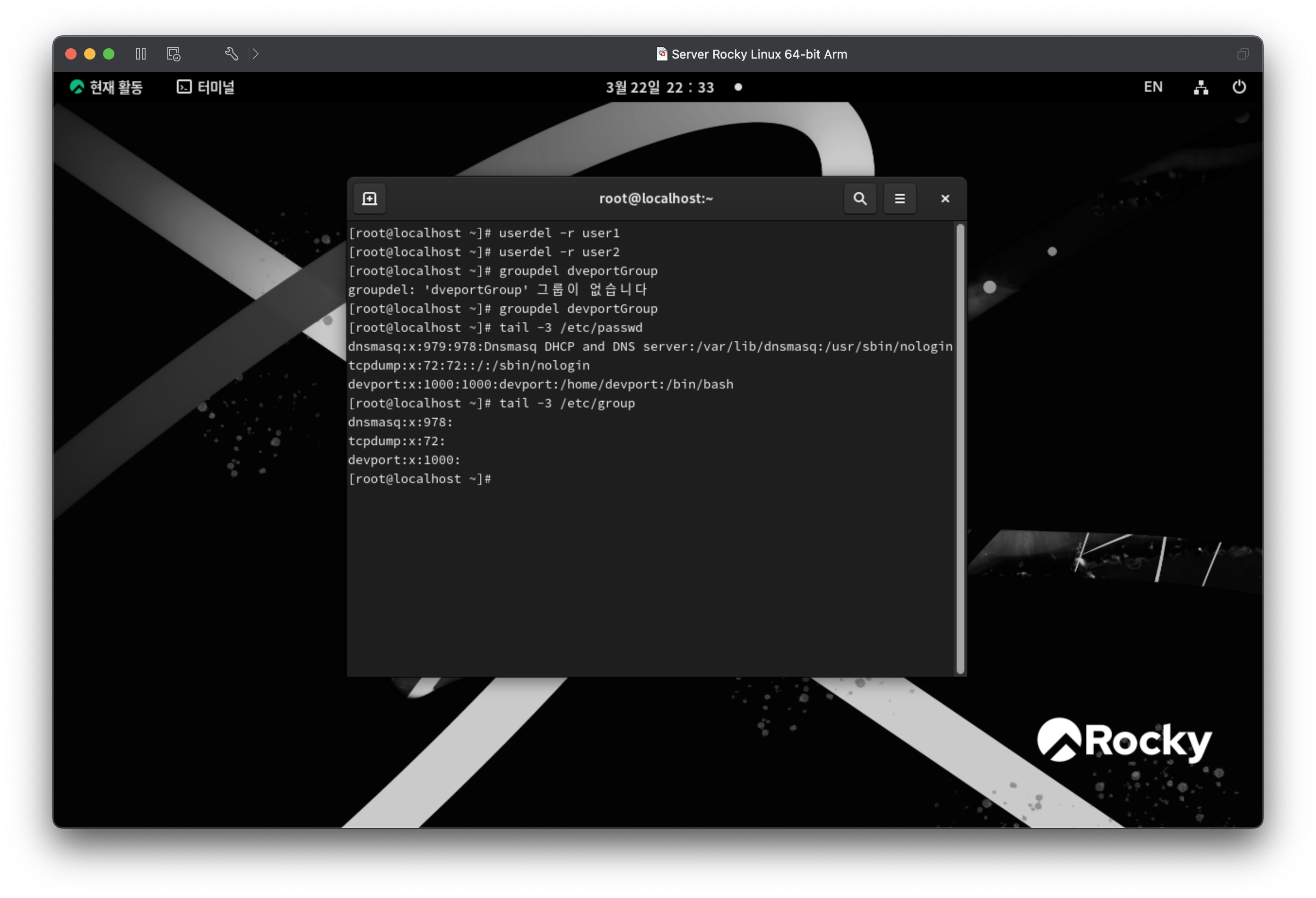 생성된 유저를 삭제한다. 그룹도 삭제한다.