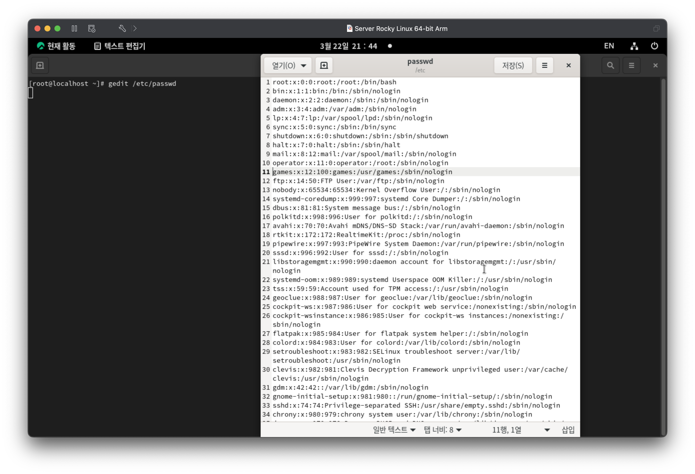 파일을 열어보면 리눅스의 표준사용자들이 보인다.