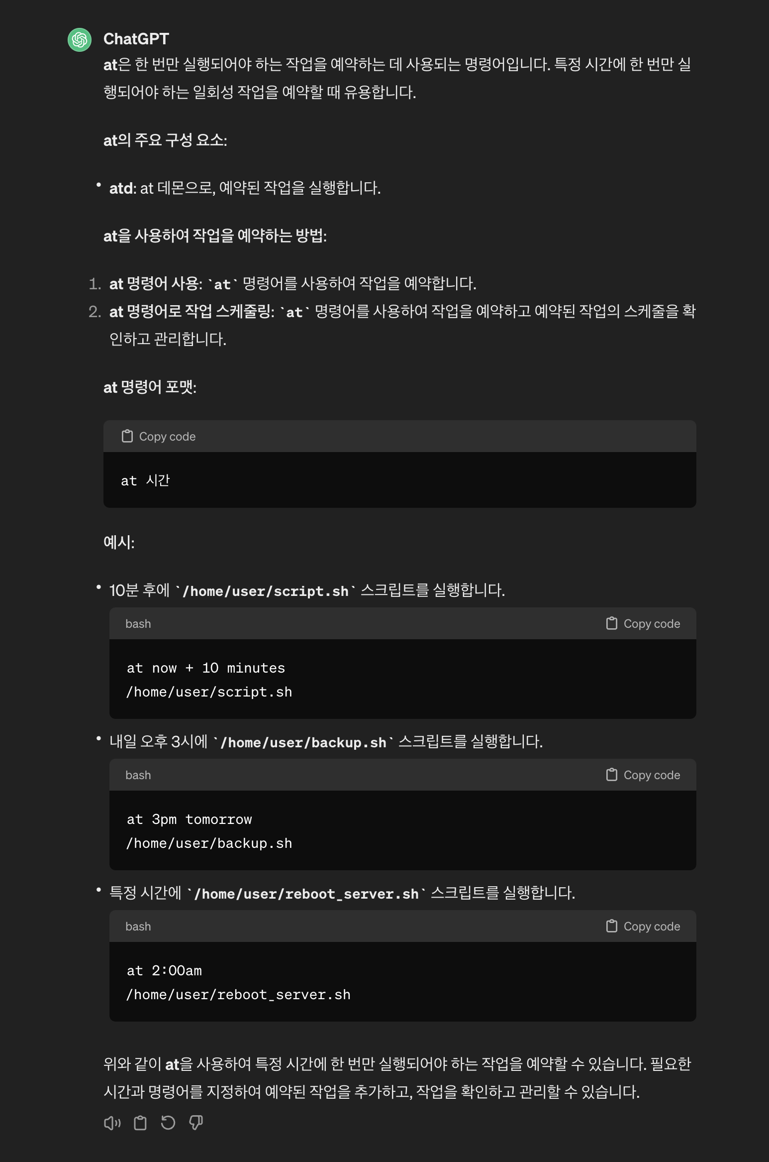 일회성 작업을 예약하는 명령이다. 한번 실행 후 소멸된다.