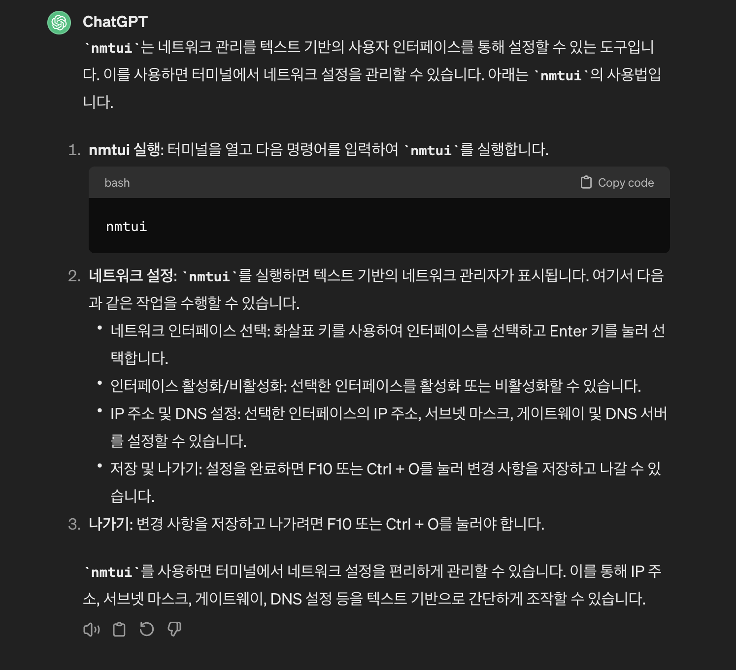 nmtui 실행 후에는 반드시 systemctl status NetworkManager 실행해야한다.