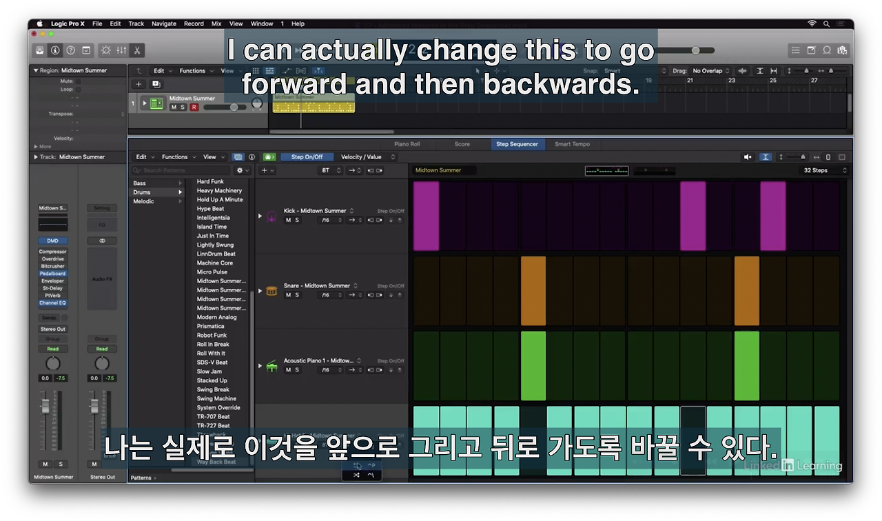 로직의 새로운 스텝 시퀀서를 이용해 드럼비트를 만들어 본다.