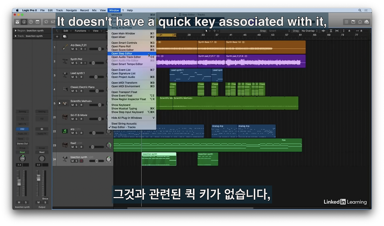 드럼 트랙 리전을 선택하고 스텝 에디터 열기