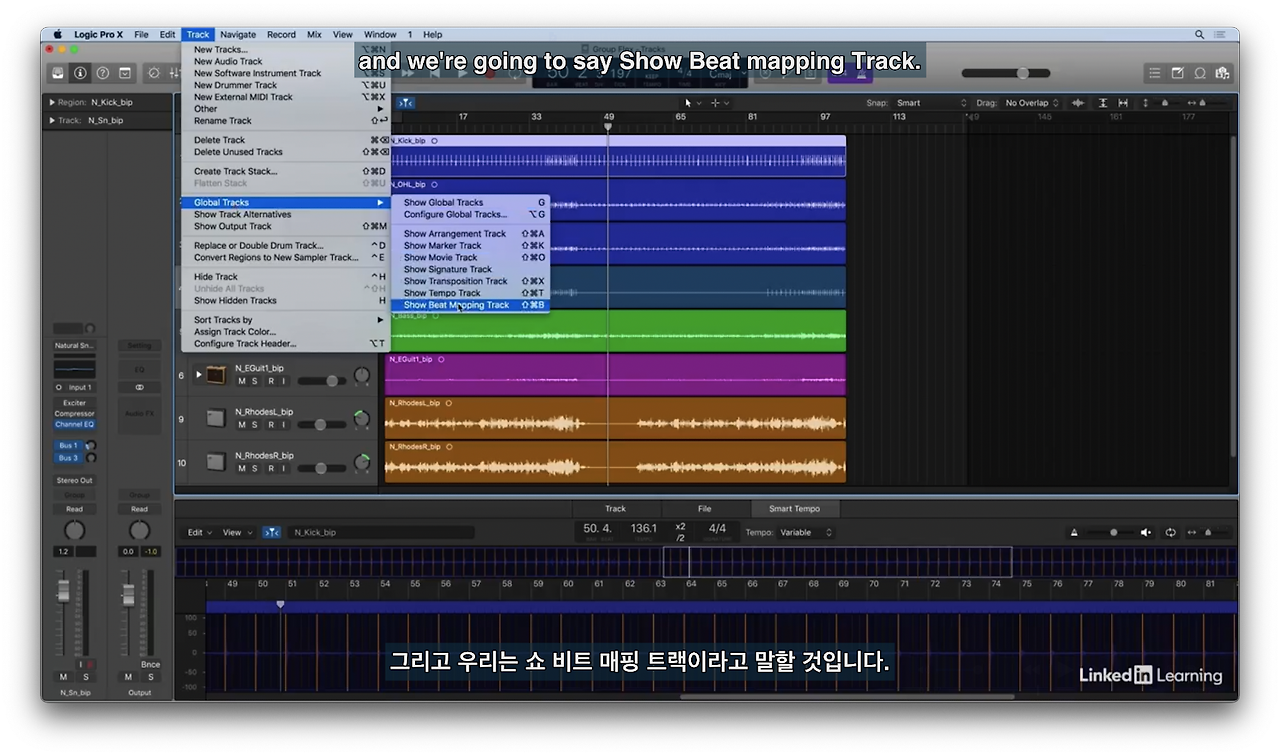 템포 트랙에서 보기(로직의 프로젝트 템포에서 생기는 일을 확인하기 위해)