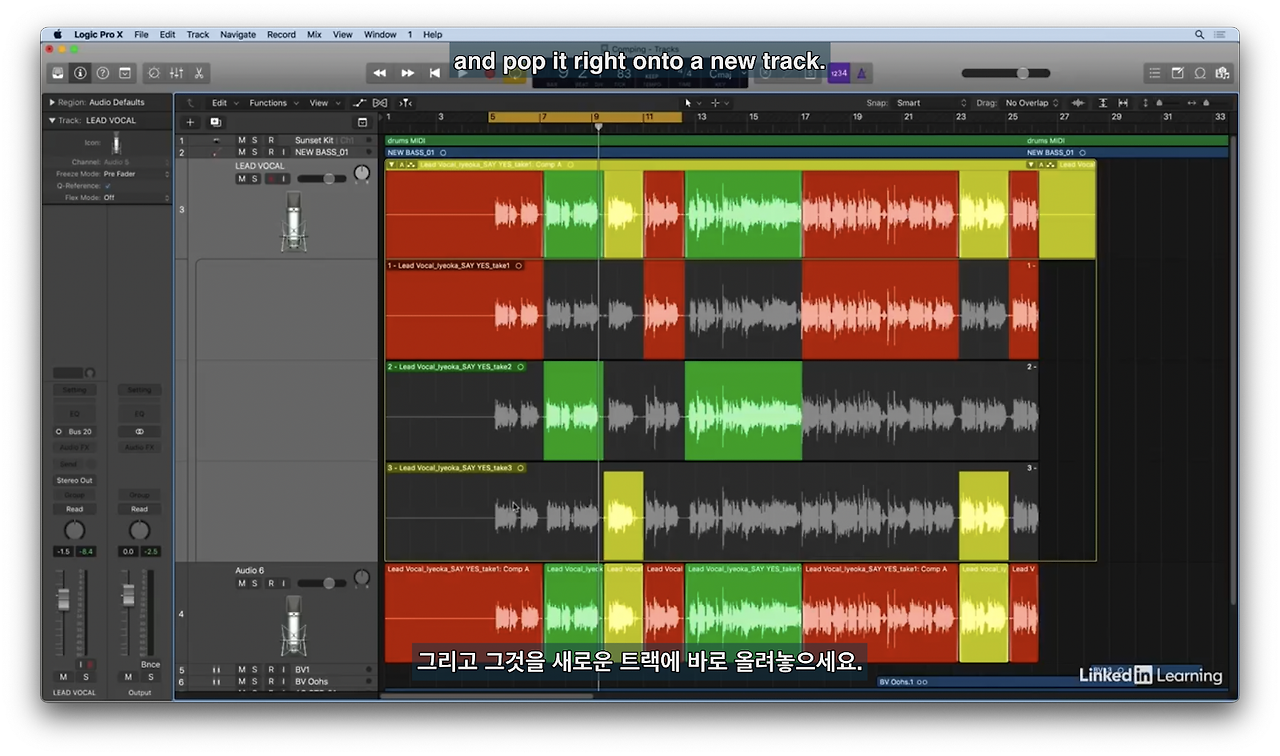 녹음 테이크를 짜깁기하여 하나의 테이크로 만드는 방법을 배운다.