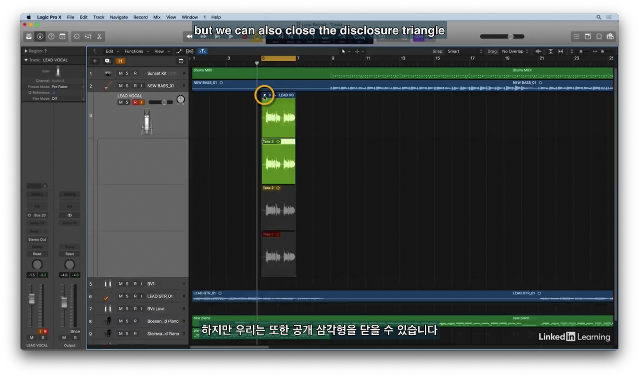 여러 테이크로 녹음한 리전이 있다.