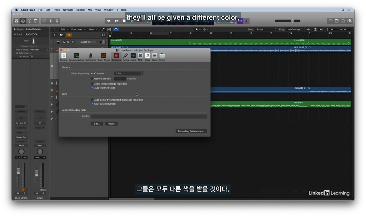 로직 설정(글로벌 세팅)에서 recording에서 설정을 체크한다.