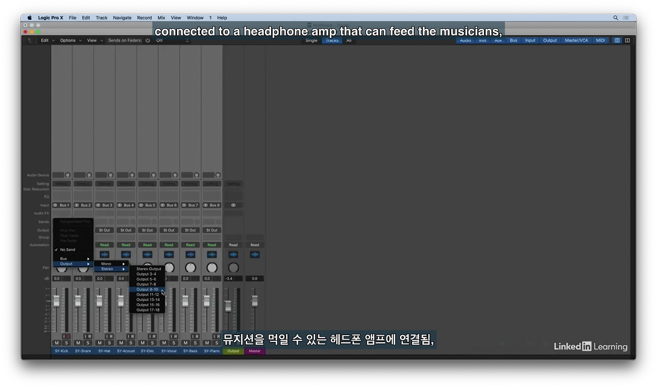 이 과정을 반복해서(추가한 sends 아래버튼) 여러 출력 단자로 소리를 보낼 수 있다.
