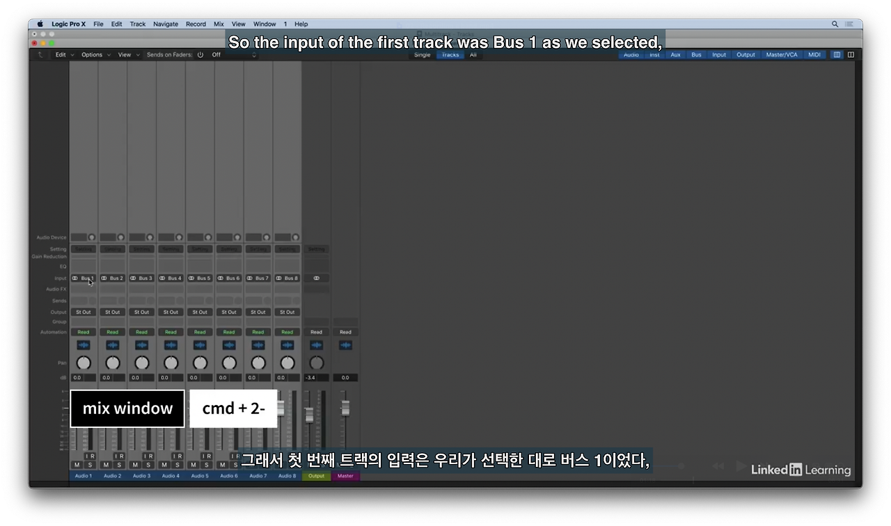믹스 윈도에서 확인해 보면 Bus1~Bus8까지 자동 매칭 된 것을 볼 수 있다.