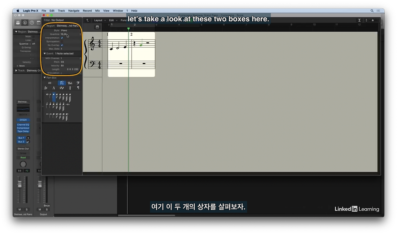리전 인스펙터에는 악보의 스타일과 quantize(아날로그 정보를 디지털화) 정보가 담겨있다.