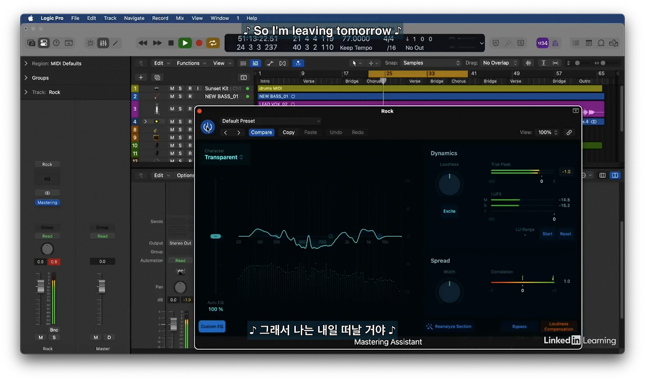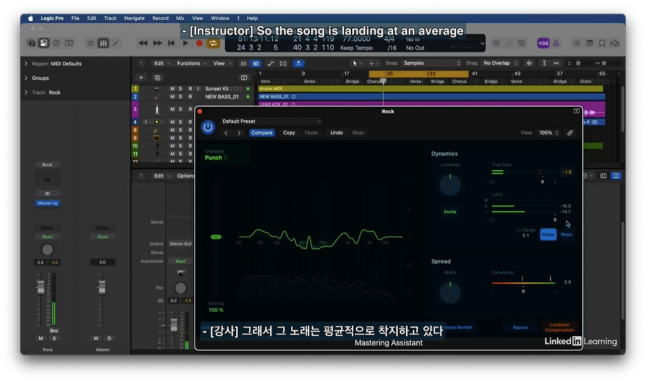 마스터 어시스턴트를 활용하여 자동 EQ를 적용하고 LUFS범위를 확인하여 적절한 볼륨으로 마스터링 한다.